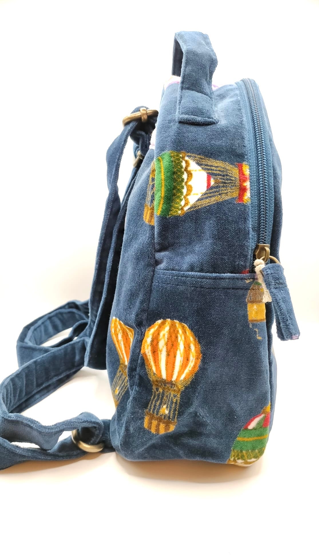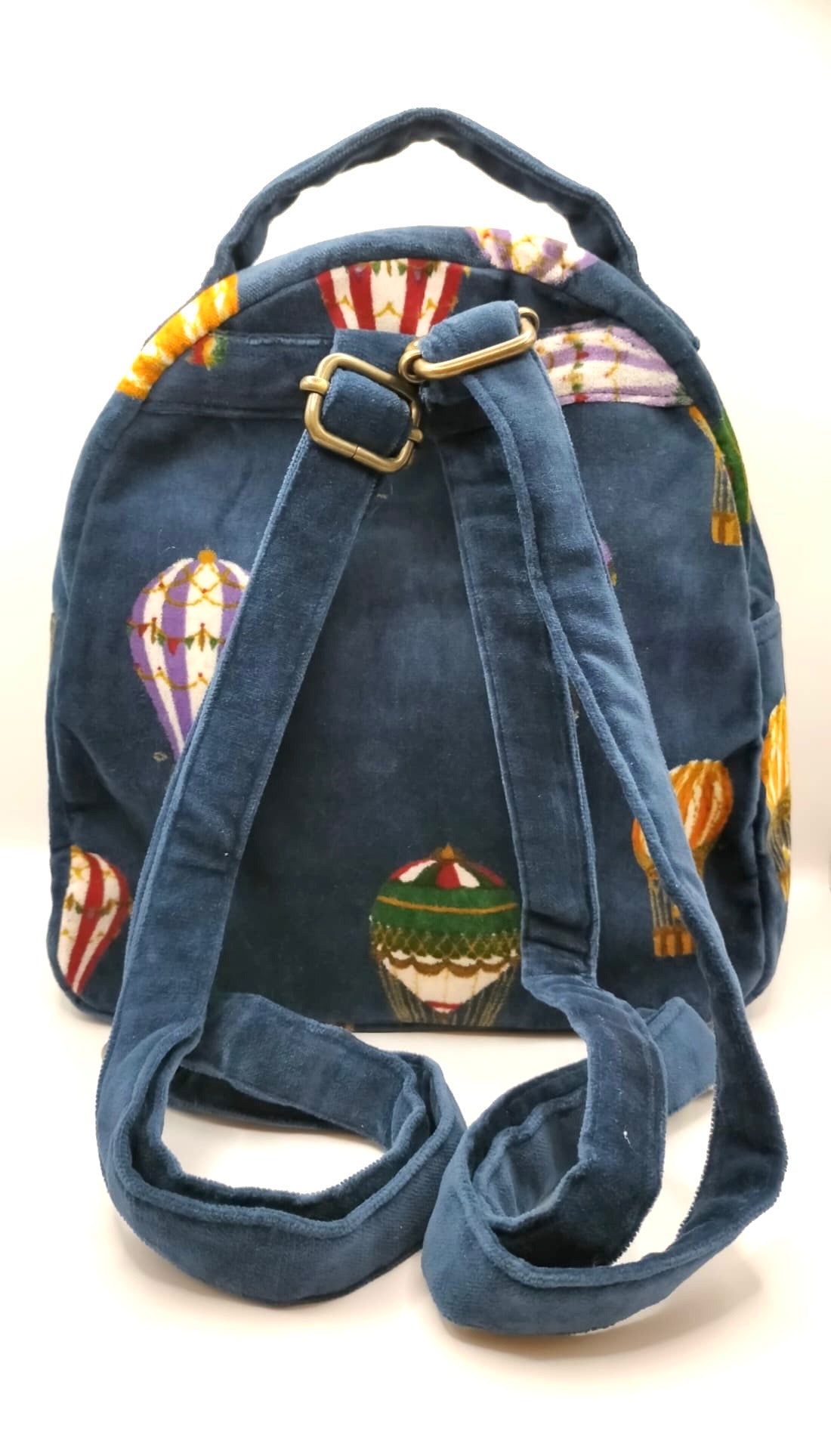 Versione mini dello zaino in velluto ha spallacci regolabili, fodera interna in cotone e tasca con zip